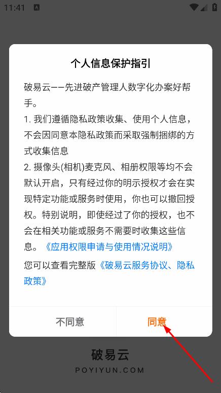 1、在个人信息保护指引弹窗中,点击同意,进入软件。