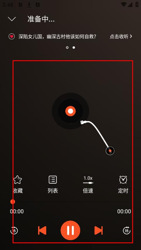 3、使用辅助功能:听书过程中,软件自动记忆播放进度,退出后再次进入可直接续听;遇到喜爱的书籍,点击“收藏”按钮加入个人收藏夹。