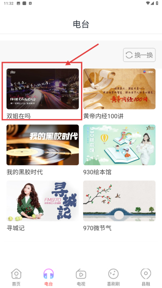 2、在电台页面,选择双姐在吗节目卡片,进入节目详情页。