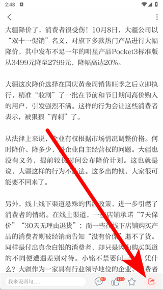 3、进入新闻详情页后,点击页面右下角的分享图标。