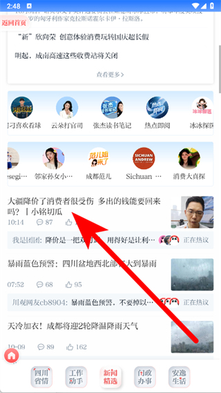 1、打开川观新闻APP,点击底部新闻精选。