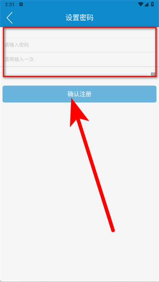 5、在设置密码页面,输入密码并再次确认,点击确认注册,完成账号注册。