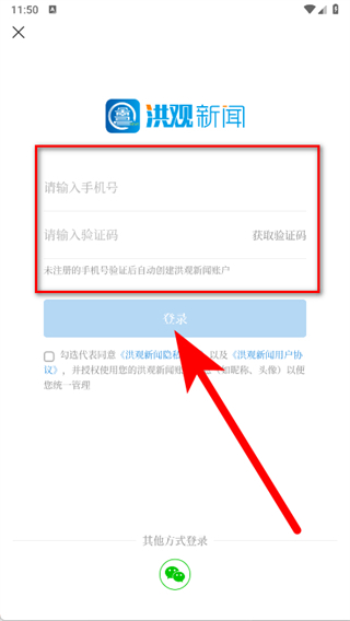 4、在登录页面,输入手机号、获取并输入验证码,勾选后点击登录,完成注册。