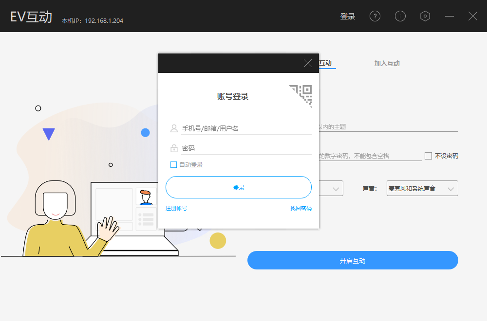 EV互动是一款局域网视频会议软件,专为企业内网沟通设计,能有效防止隐私泄露,提供音频、视频等多种互动方式,适用于多人圆桌会议、小型内部会议等场景,软件界面简洁,操作便捷,通过分享链接即可快速加入,具备屏幕共享、桌面画板等实用功能,让沟通更直观,可以多平台的设备上使用,方便随时随地参与会议。