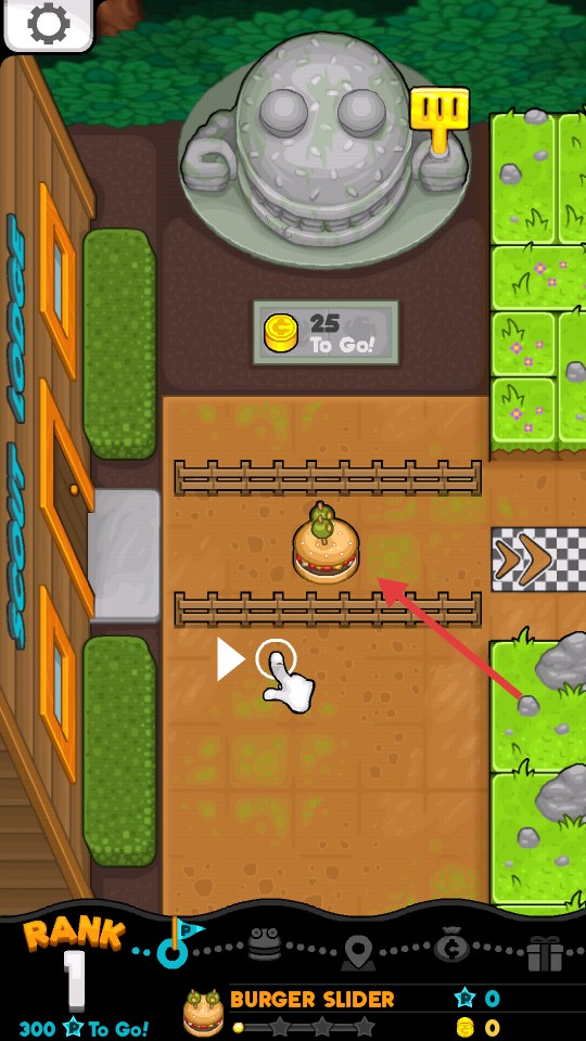 2、在关卡中,操控汉堡角色沿路径移动,收集金币和蓝色星星,获取资源。