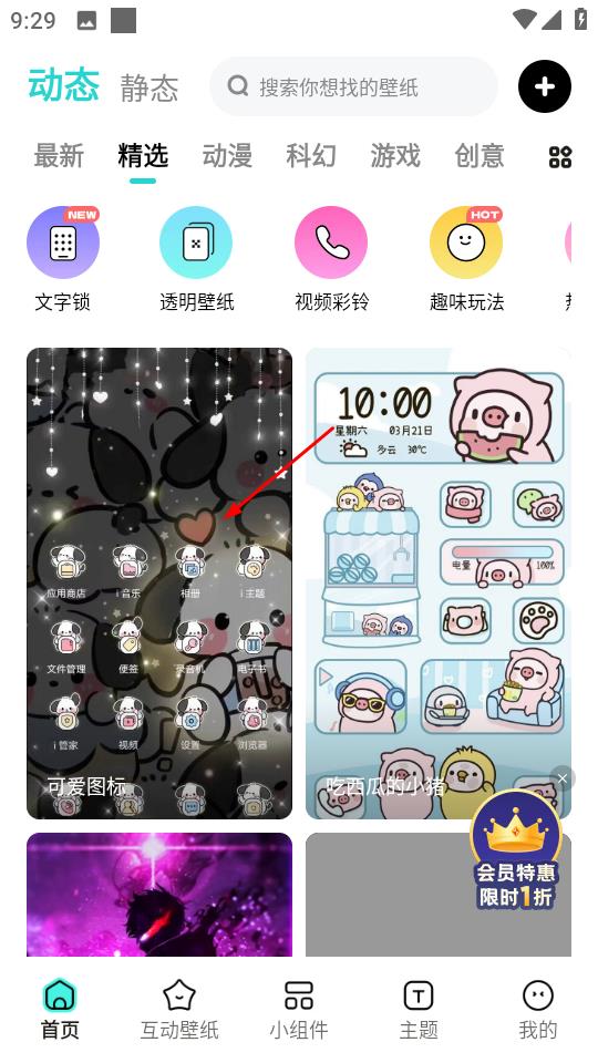 1、多系列壁纸资源:汇聚精选、潮流、卡通等丰富分类的壁纸,资源库品类齐全且持续更新,无论是日常使用还是风格切换,都能找到适配素材。