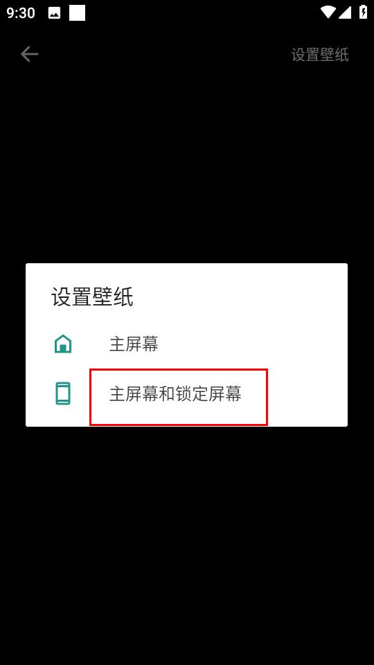 4、在设置选项框中,选择主屏幕和锁定屏幕,完成壁纸设置。