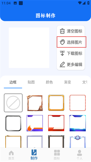 2、在图标制作页面,点击选择图片,进入图片选择页面。