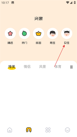 2、在头像页面,点击女生标签,进入女生头像页面。