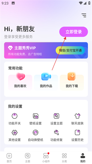 1、点击主题秀秀首页底部的我的,进入个人中心页面。