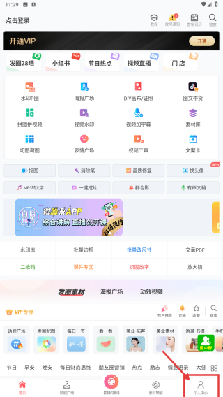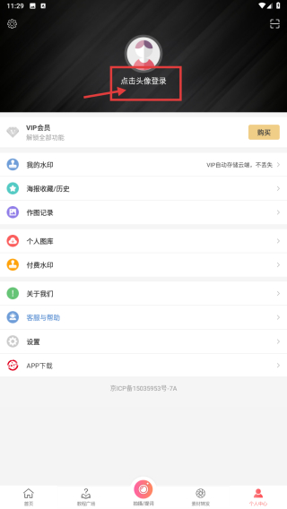 1、打开图片编辑类应用,点击底部个人中心选项,进入个人中心页面。