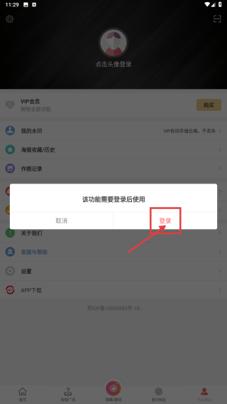2、在个人中心,点击点击头像登录选项,弹出登录提示框。