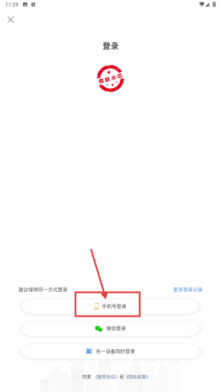 4、在登录页面,点击手机号码登录选项,进行手机号码登录操作。